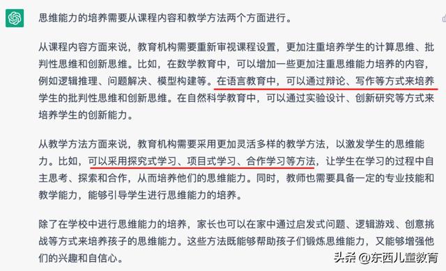 ChatGPT从教育内容和方法两个方面给出了一些建议,角度不错。