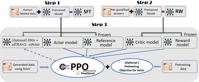 图|DeepSpeed-Chat的RLHF 训练流程图示,包含了一些可选择功能(来源:微软)