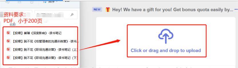 上传格式必须是200页以内的PDF,别的不行!每次只能上传1个PDF。