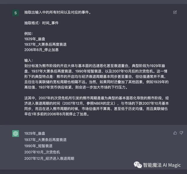 接下来,我们可以利用前文讲过的Few-Shot技巧,给ChatGPT几个示例: