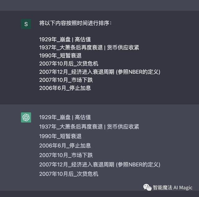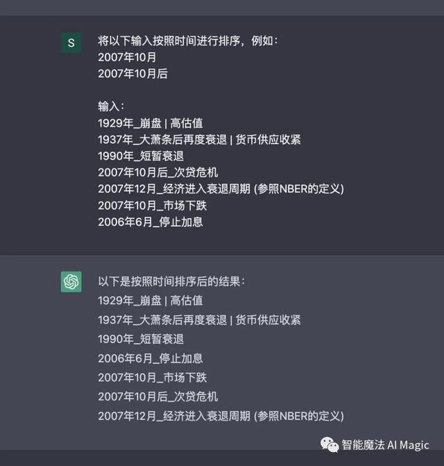 这次结果全了,并且实现了很好的聚合效果。接下来,我把这些结果复制到我新问题的上下文中,让它再按时间排序一下(order by):