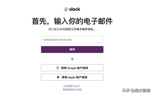 准备一个非国内公司邮箱账号,推荐微软邮箱(不受网络限制),就可以打开Slack网站创建工作区的工作区。