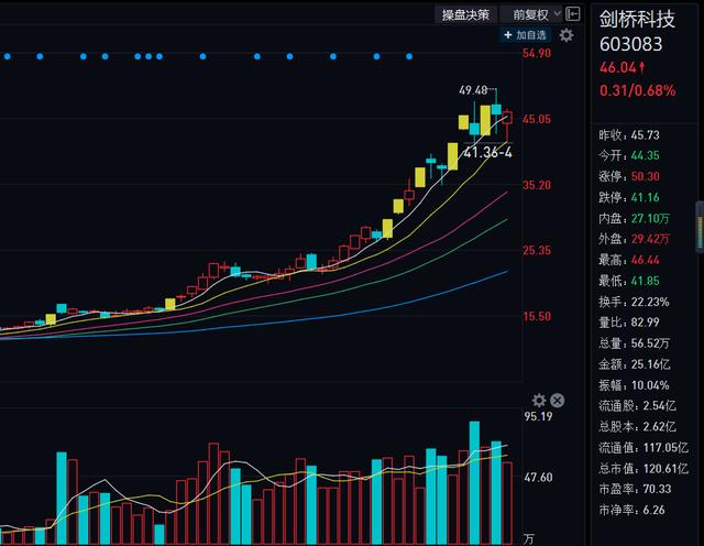 有人会说,应该是它前面涨多了,所以才炒不起来,那你再看这只“剑桥科技”。
