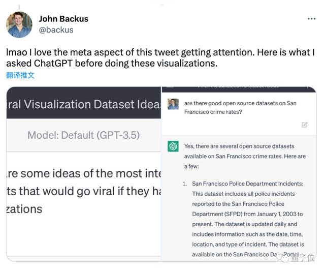 作者后来还透露,其实他根本不是研究这个领域的数据科学家,他是先问了ChatGPT“哪些数据有了可视化会很火”,然后再让ChatGPT把从哪找这些数据找出来……
