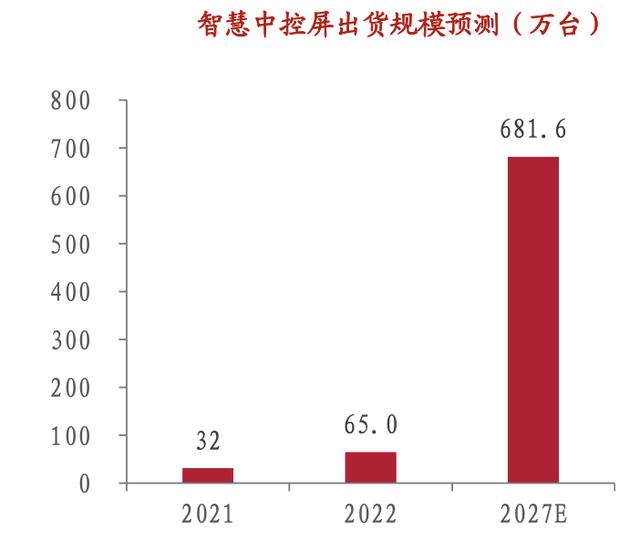 据IDC,2022年中控屏行业出货65万台,较上年翻番,未来5年预计每年增速达60%。