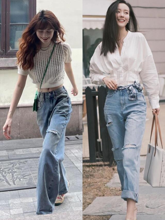 破洞的设计可以为整条裤子增添一些新的视觉亮点,牛仔裤千篇一律,但这样的设计却能让我们的造型更加出彩。不建议大家选择太过浮夸的破洞,恰到好处更能凸显高级感。