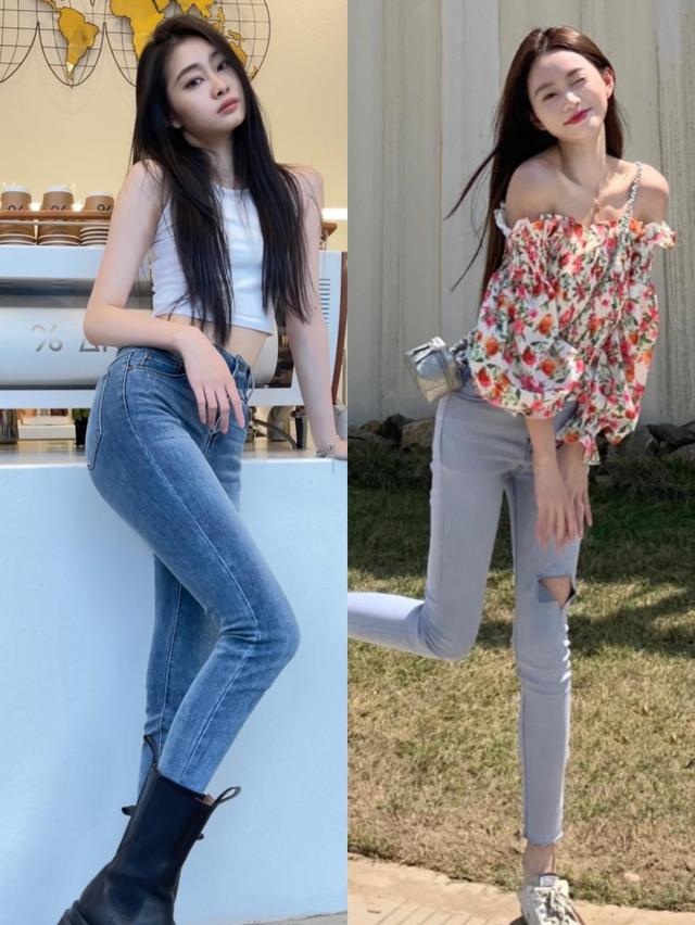 牛仔紧身裤对体型的要求比较高,腿部纤细的美眉搭配这样的一条裤子再合适不过。它可以淋漓尽致地勾勒出下半身线条,上半身不论搭配什么样的服饰都足够出彩。不过对自己下半身不是很自信的女生还是不要轻易尝试,它也很容易暴露出腿部问题。