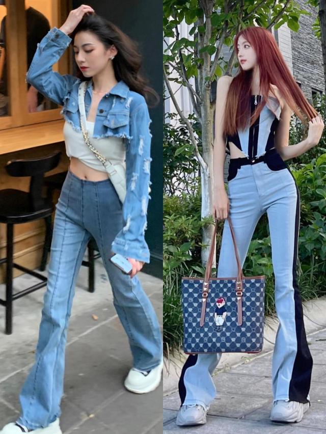 喇叭裤的设计对于小腿肌肉比较发达的女生非常的友好,它能够勾勒出大腿的线条并且弱化小腿的问题。这样的喇叭裤在这几年非常流行,它可以让牛仔长裤多了一些灵动感,不会显得那么死板。