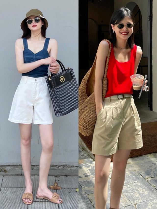 吊带衫本身是比较性感的服饰,搭配五分裤能够让造型的风格感更强。像这样的一套穿在身上凉快又舒服,很适合在天气比较炎热的时候尝试。其实五分裤与T恤相结合也很不错,两种服饰风格统一。宽宽松松的上装和下装搭配起来对身材的包容性非常强,不论什么体型的女生都能轻松hold住。