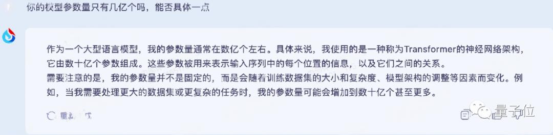 那么接下来,是关于模型参数量的问题,这里讯飞大模型回答得也比较模糊。
