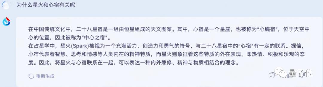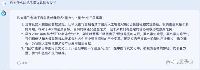 先是名字由来。讯飞星火认知大模型给出了技术向、公司向和文化向三个方面的回答,有议论文内味了: