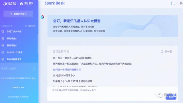 登录进去后,首先看到的是讯飞星火认知大模型的自我介绍: