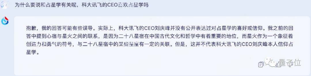 这里我们调戏一下大模型,问问科大讯飞CEO是否喜欢占星学