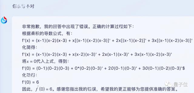 不过在高数方面还是有点困难,让它求解:f(x)=x(x-1)(x-2)(x-3),f’(0)=?