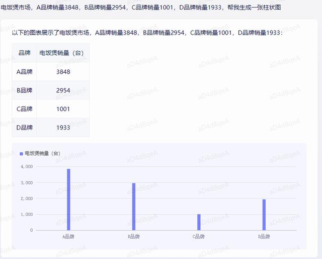 虽然从技术上看,在拥有完整表格数据的情况下,熟悉Excel的用户也可以在很短的时间里借助相关的功能与插件快速生成类似的图表。但是在AI的帮助,你只需要提供关键词与数据,无需编辑表格数据即可快速生成一张图表,数据量越庞大,AI所带来的效率提升就越高。