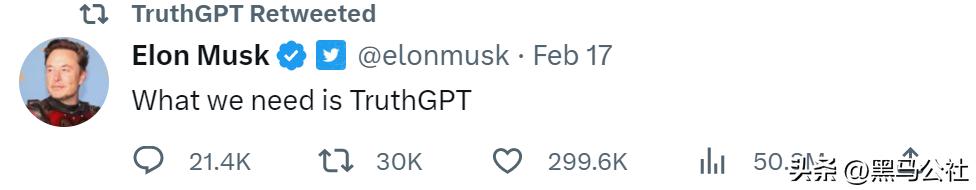 现在,马斯克推出自己的AI应用产品——TruthGPT时,盛赞它是一款“一个最大限度地寻求真理的人工智能,它试图理解宇宙的本质。”