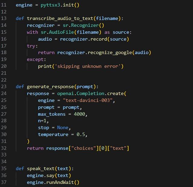 为了创建这个助手,我们将使用各种库和函数,如openai、pyttsx3、speech_recognition、time和pyaudio。我将提供一个详细的代码分解,并解释它是如何工作的,以便任何人都可以学习如何创建他们自己的人工智能助手。
