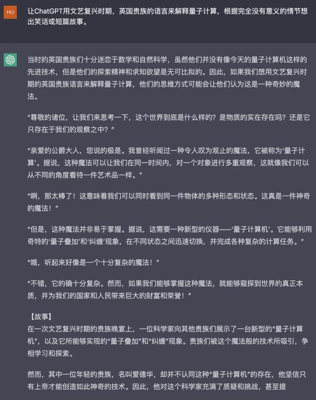 让ChatGPT用文艺复兴时期,英国贵族的语言来解释量子计算,根据完全没有意义的情节想出笑话或短篇故事。