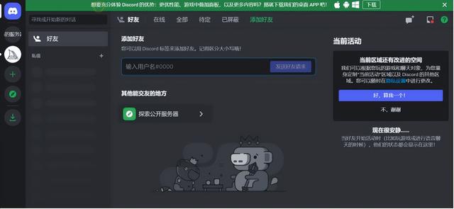 验证完成后,discord账号就注册完成了。注册完成后长这个样子: