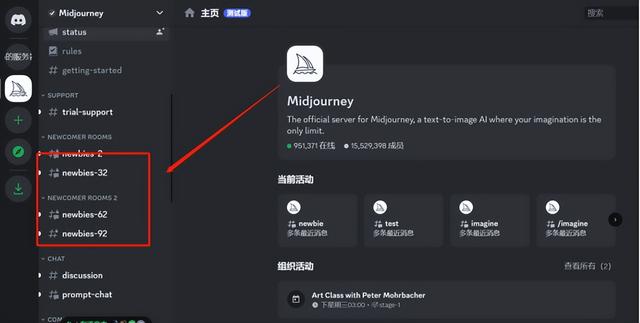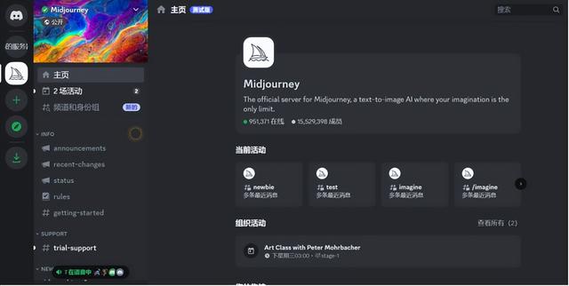 这里给大家解释下,discord有点类似我们的微信,而midjourney则类似于微信中的一个小程序一样。我们需要借助discord来打开midjourney。