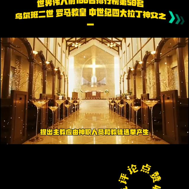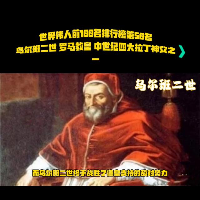 世界伟人前188排行榜第58名:乌尔班二世罗马教皇中世纪四大拉丁神文之乌尔班二世。
