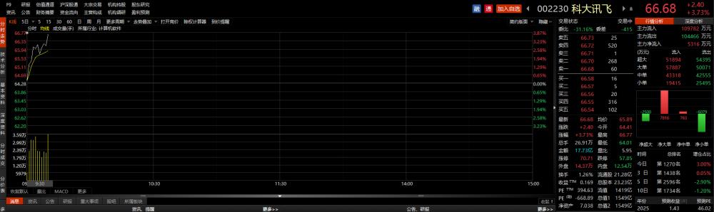 今日(5月10日)早盘,ChatGPT概念板块再度走强,其中近期刚刚发布“星火认知大模型”的科大讯飞盘中快速拉升,涨幅近4%。