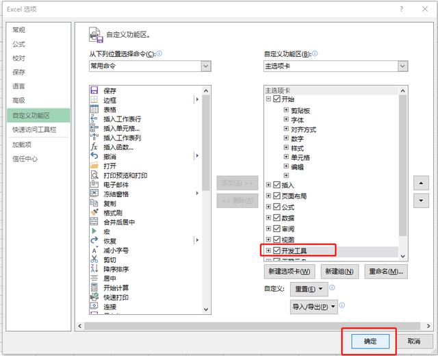 2-4、勾选“开发工具”选项,并点击“确定”按钮。