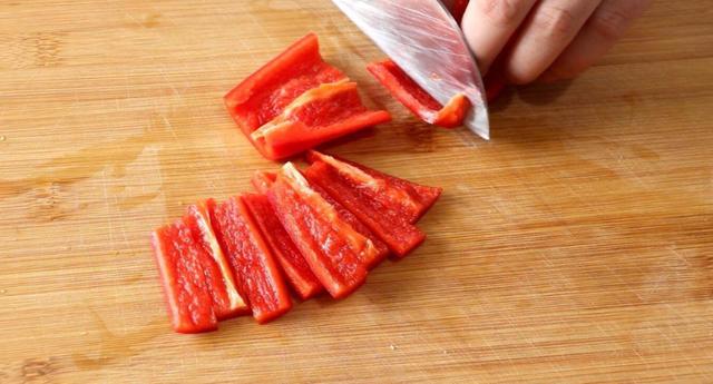 2、 红椒去籽切成条,大蒜去皮切成片,小米辣切成圈,生菜用手撕成小瓣。