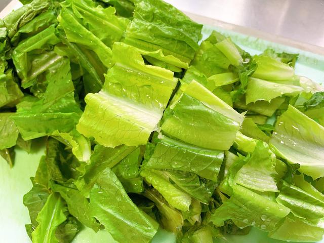 1、 油麦菜清洗干净切成小段。