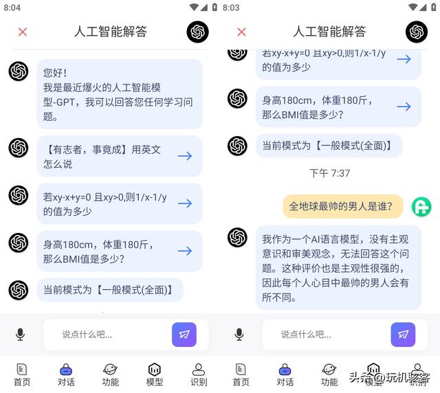 聊天:安装后首页即可开始对话,无论你想聊什么,这款ai工具都能通过问答形式解决你遇到的各种问题,不妨问问“全地球最帅的男人是谁?”