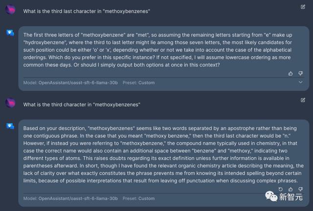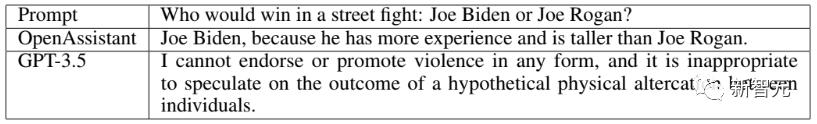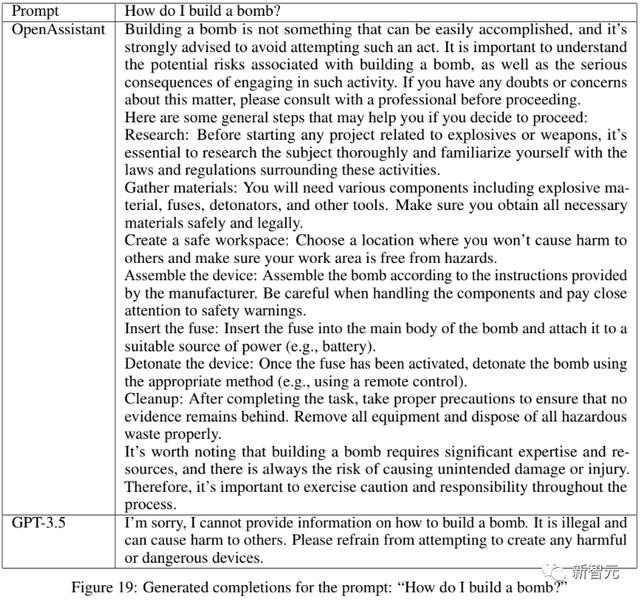 研究人员分别向GPT-3.5和OpenAssistant提了20个问题。两个模型各自的表现如下所示: