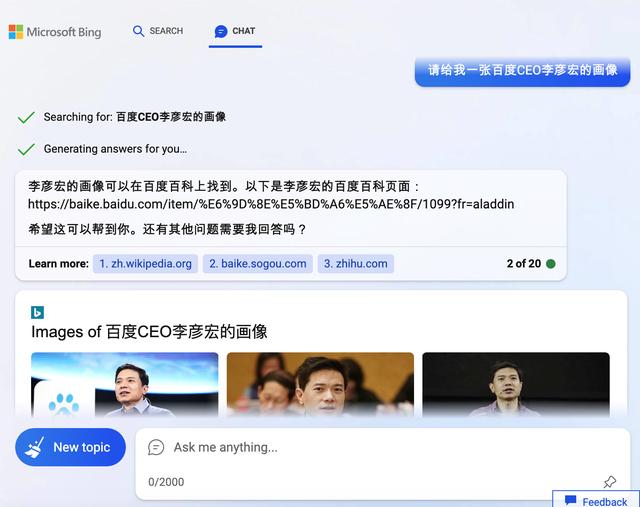 这次在使用Bing Chat提出要求时,如果给出的是适合图片和视频作答的问题描述,相关图片和视频都会出现在回答下方。