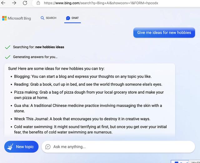 微软这次新增了很多功能,最大变化可概述为,用户在Edge浏览器中打开Bing Chat页面,就可以完成所有任务,而无须再在网页之间进行切换。
