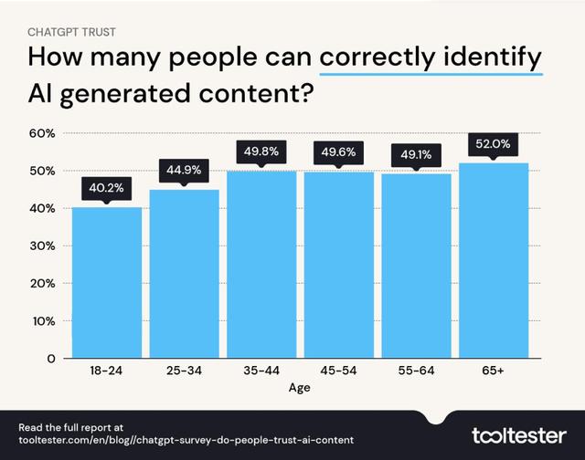 https://www.tooltester.com/en/blog/chatgpt-survey-can-people-tell-the-difference/#Younger_people_struggle_more_with_identifying_AI_content