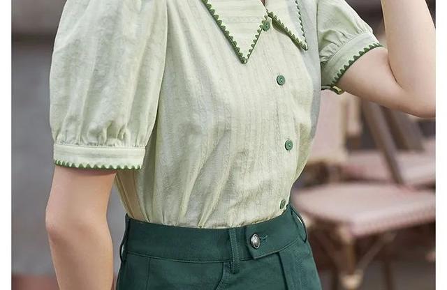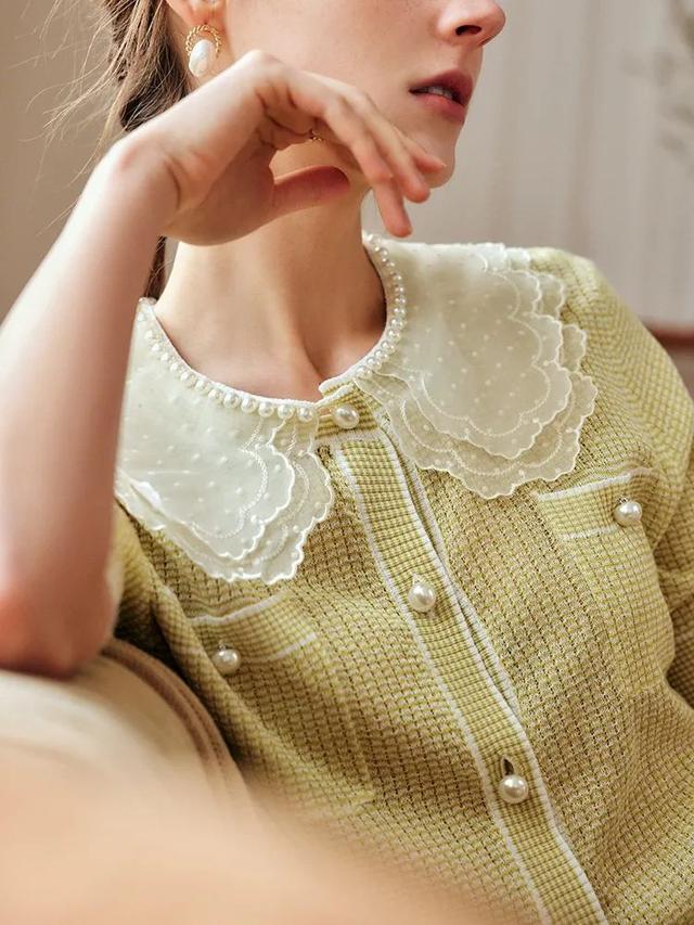 ?带有珠珠装饰的小翻领,圆润边角的彼得潘领,都是展现少女娇俏可爱的有力道具。