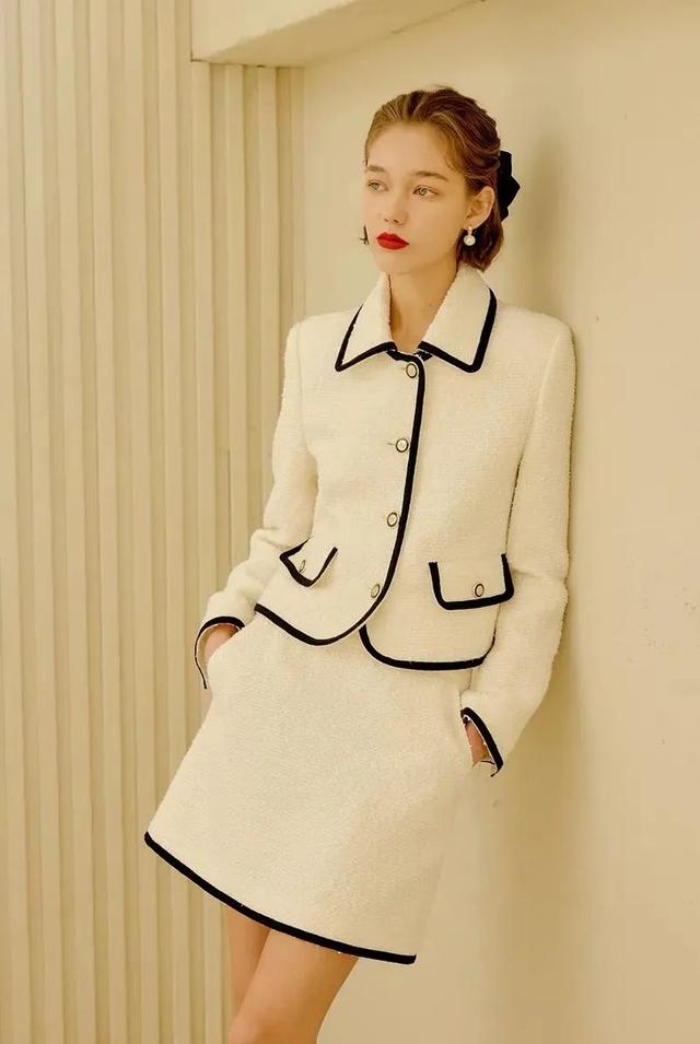 增强衣服的品质感。这一套黑色镶边的乳白色职业套装,薄呢的红色连衣裙,是不是感觉很高级呢。