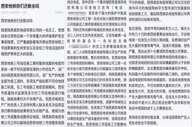 帖子的作者自称是陕西奥凯电缆公司的员工,他在帖中详细地指出,西安地铁三号线存在着严重的安全隐患问题。