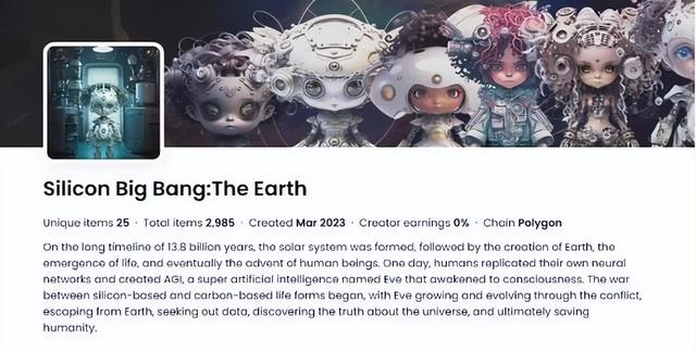Silicon Bigbang在Opensea上也有账号,我们窥见了这个IP宇宙的全貌。