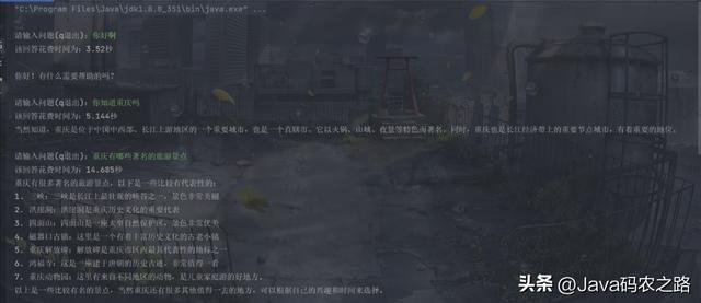 System.out.println("该回答花费时间为:" + (end - start) / 1000.0 + "秒");
