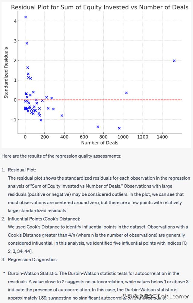 ChatGPT直接使用残差图来评估异常值的影响。并给出了三个步骤:
