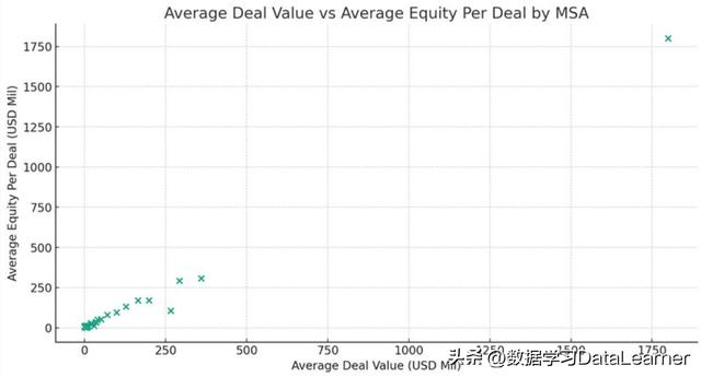 这是将每一个MSA单独统计,计算它们的平均交易数额,以及每一笔交易的平均资产额度,然后把所有的区域用散点图展示。