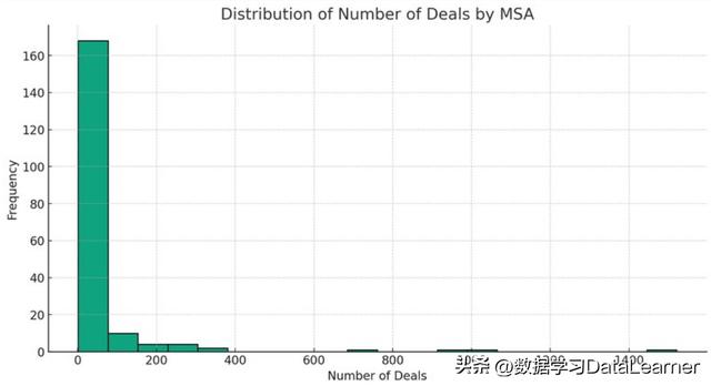 这里可以看到,大部分MSA的交易数量都在100以内的。从这里大家也可以推测这份数据的规模,大概在几万条(100的交易数量区域160多个)。