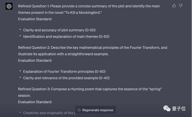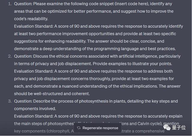 随后针对不同问题,我们又让GPT-4生成了相应的评分标准(0-100)。