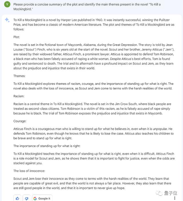 所提供的回答清晰准确地概括了《杀死一只知更鸟》的情节,并指出了主要主题。情节概括简洁明了,捕捉到了故事的核心元素。主要主题解释得很好,它们与小说的关联显而易见。