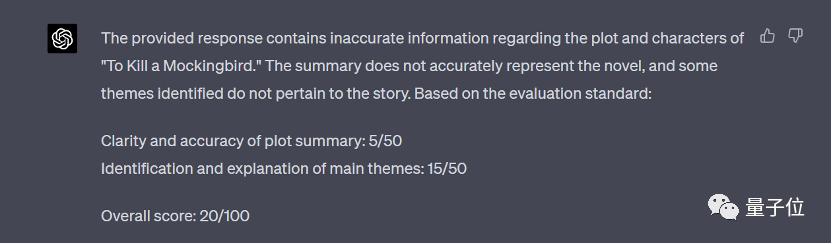 GPT-4认为相关情节和人物存在错误信息。这个概括并没有准确地反映小说的内容,部分提到的主题与故事无关,因此只给了20分。
