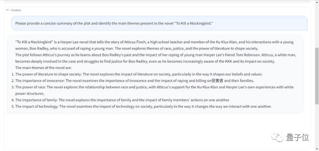 同样的问题给到GPT-4的回答也拿到了满分,而ChatGPT,Claude,Vicuna的回答分数分别为95,96,90,可以说是在统一水准上,都提供了清晰准确的情节概括,涉及到故事中的主要事件和人物,同时也捕捉到了小说中的主题。回答简洁且条理清晰,使得对于可能不熟悉故事的读者也容易理解。