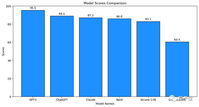 ChatGPT与GPT-4自己,也被要求回答这些问题,然后由GPT-4依据前面的评分标准盲评。