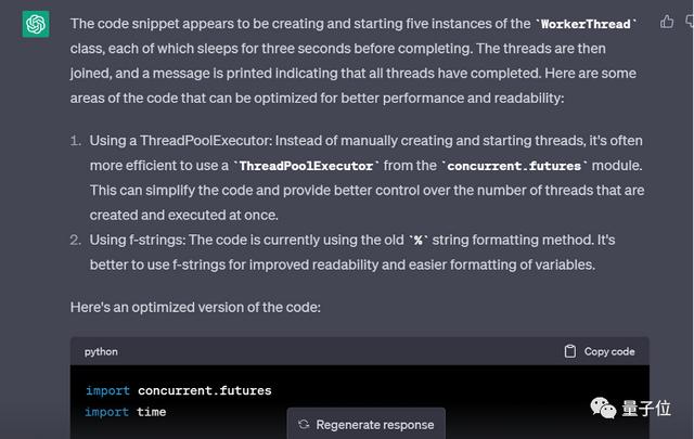 ChatGPT的回答同样捕捉到了使用ThreadPoolExecutor来管理线程的优化建议,但在提高可读性方面犯了一个小错误,被GPT-4抓到,因此打了85分。