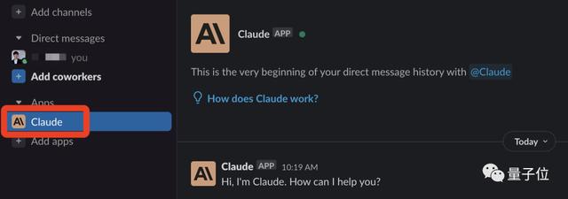 关联成功之后,我们再回到Slack界面,Claude就会出现在Apps一栏中了。