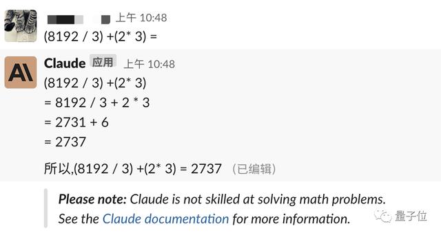 有意思的是,每次Claude在回答数学题系统都会声明自己不擅长这个。